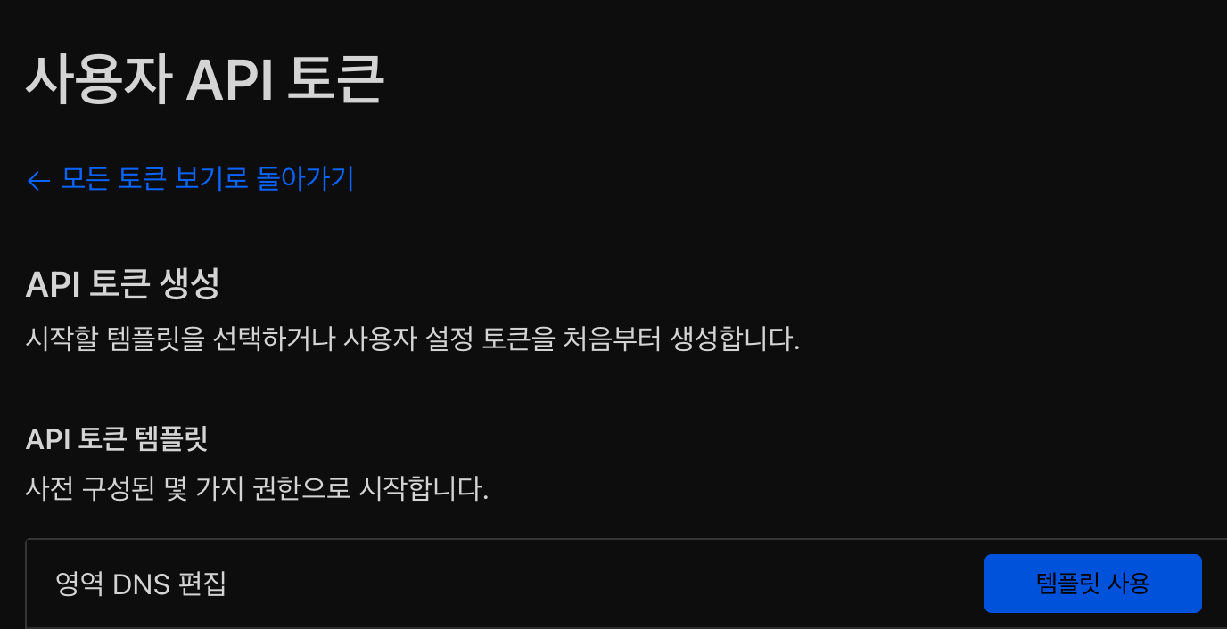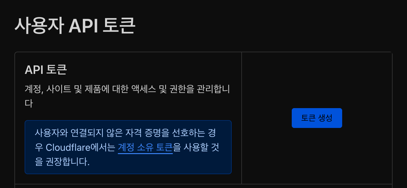 https://dash.cloudflare.com/profile/api-tokens 이동 후 토큰 생성