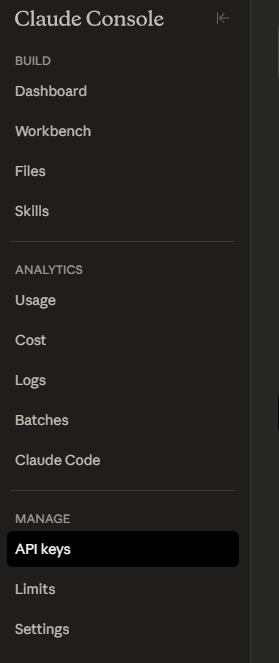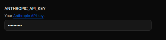 6. 아래 사진에서 보이는 "Anthropic API key" 링크 클릭 ( 기존에 사용중인 키가 있으면 해당 키 사용해도 무방 )