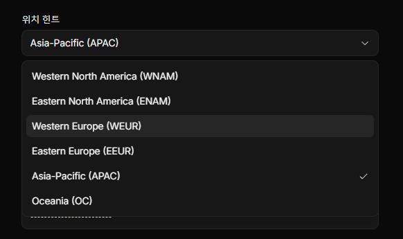 5. 본인이 사용하고자 하는 위치에 최대한 가까운 곳 선택 ( 한국이라면 APAC )