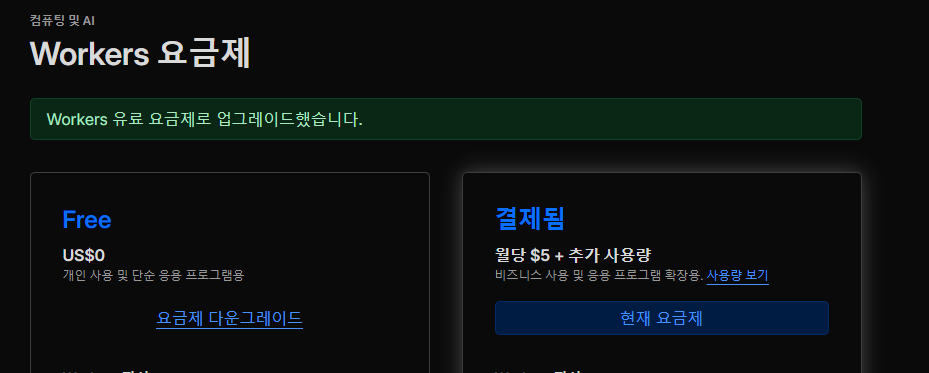 13. 이미 Workers 유료 플랜이거나 결제하면 아래 사진처럼 나타남