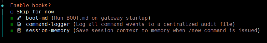 - 훅 활성화 여부 > 기본적으로 제공하는 훅 3개 전부 활성화