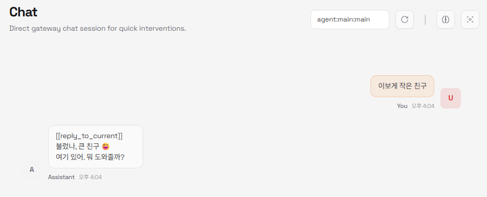 오픈클로를 설치할 때 별다른 세팅을 해주지 않았기 때문에 지금은 그냥 깡통인 상태라서 할 수 있는게 없다.