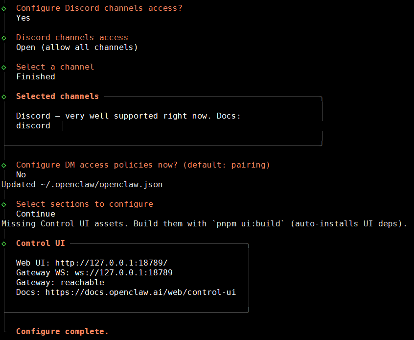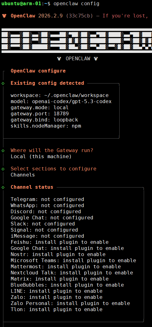 이전 포스팅에서 OpenAI 연동하듯이 config 명령어를 이용해서 채널(메신저) 설정을 진행한다.