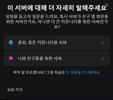 윈도우 기준 디스코드 설치하고 아래와 같은 단계로 우선 서버를 만들어야 한다