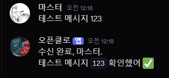 다만 아직 오픈클로에서 그 어떠한 설정도 하지 않았기에 말을 걸어도 딱히 반응을 하지 않는다.