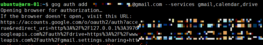 gog auth add xxxx@gmail.com --services gmail,calendar,drive