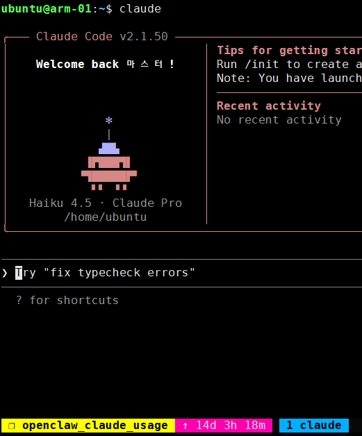 1. (오픈클로 설치 환경에서) 클로드 CLI 설치