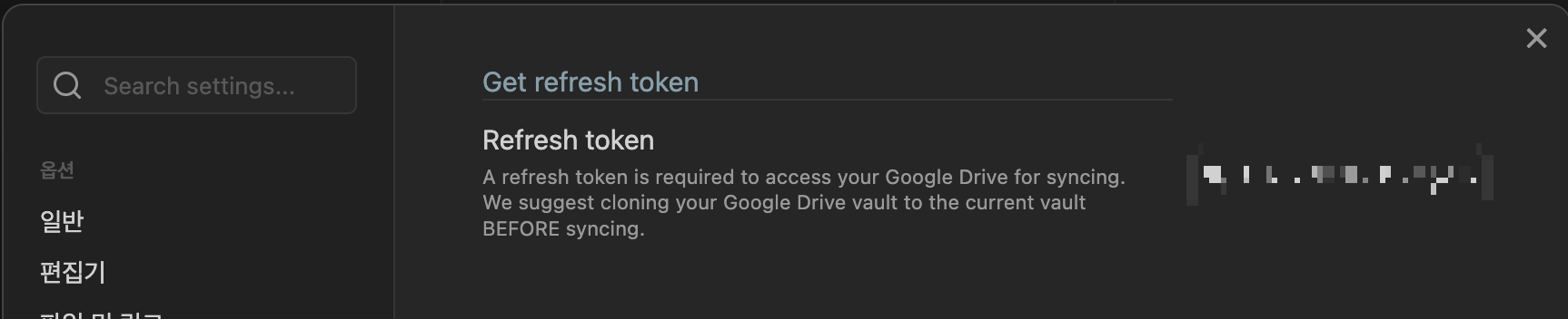 사용법은 꽤 심플한데 해당 플러그인 설치 후 https://ogd.richardxiong.com/ 이곳에 들어가서 사용하고자 하는 구글 계정으로 로그인하면 토큰을 발급해주고, 그 토큰을 플러그인 옵션에 넣어주고 옵시디언을 재시작하면 된다.