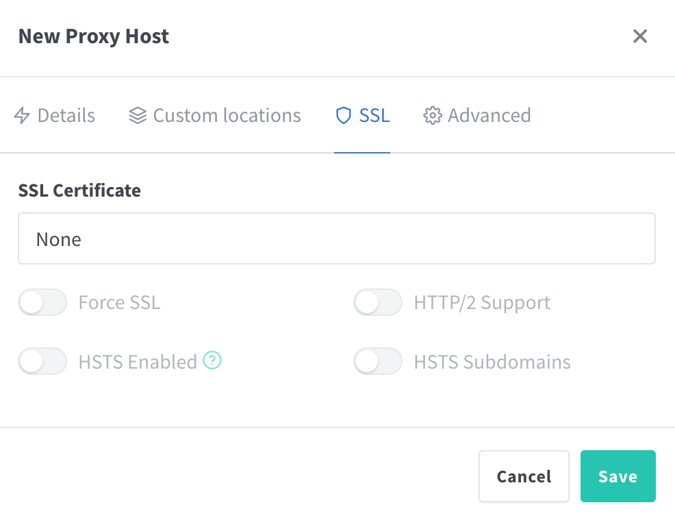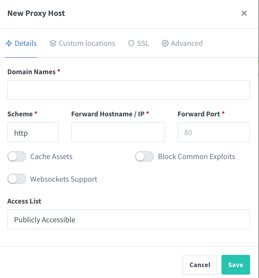 신규로 세팅하기 위해 "Add Proxy Host"를 누르면 아래 사진과 같은 설정 메뉴가 나타난다.